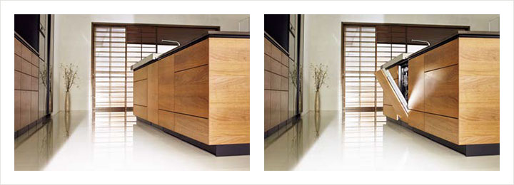 こちらの食洗機はフロントオープンで取手レスのため、デザインがシンプルでかっこいい!!