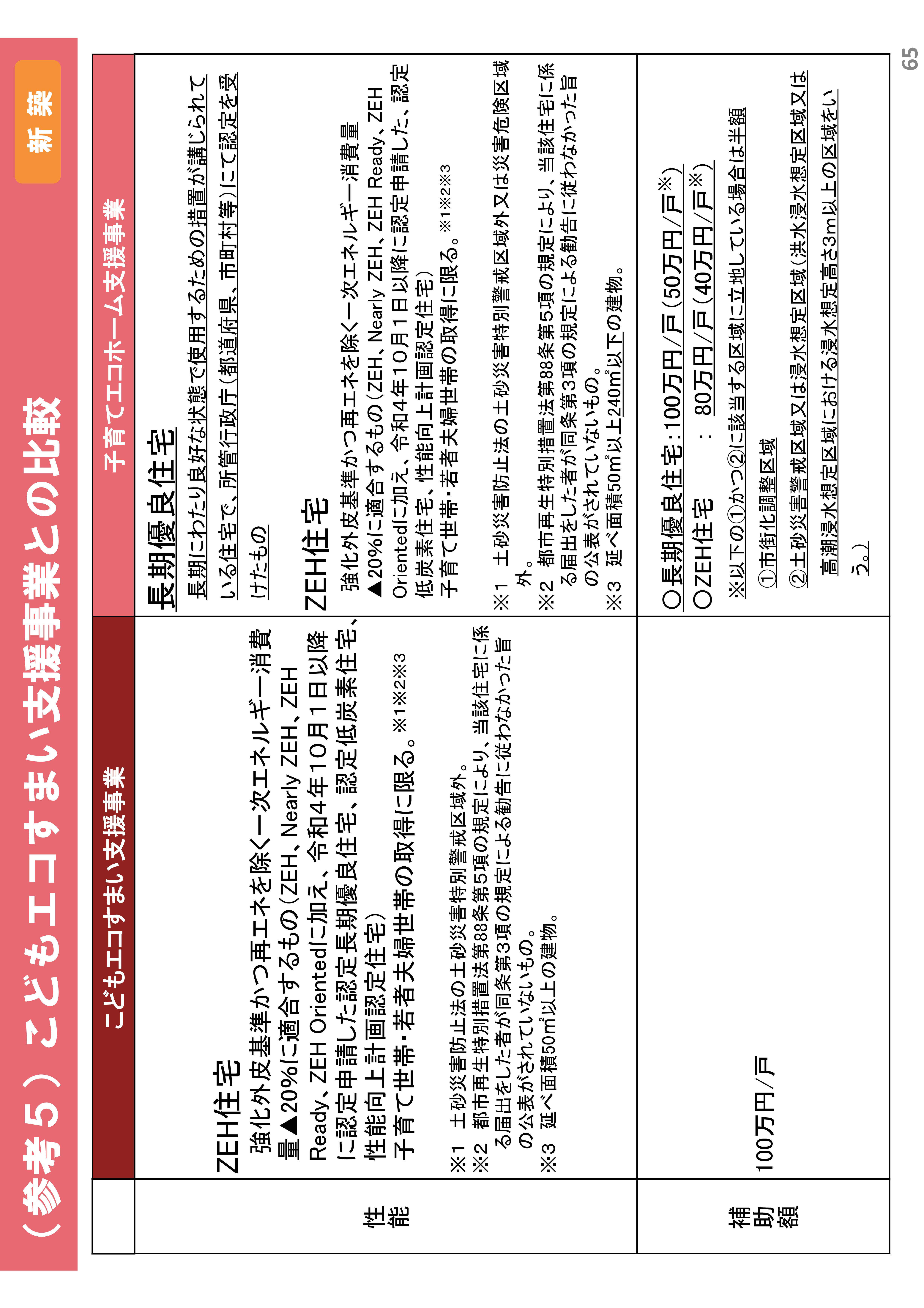 こどもエコすまいでは一律100万円だったのが、ZEH住宅は80万円へと引下げになりました。