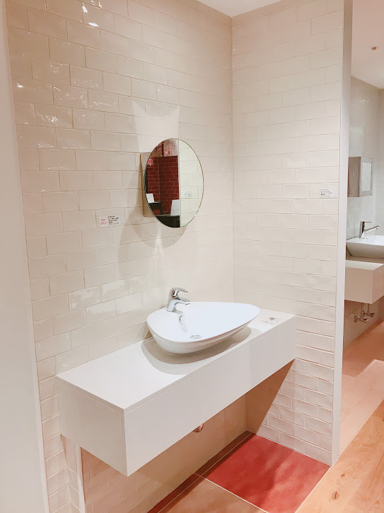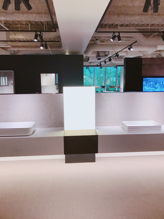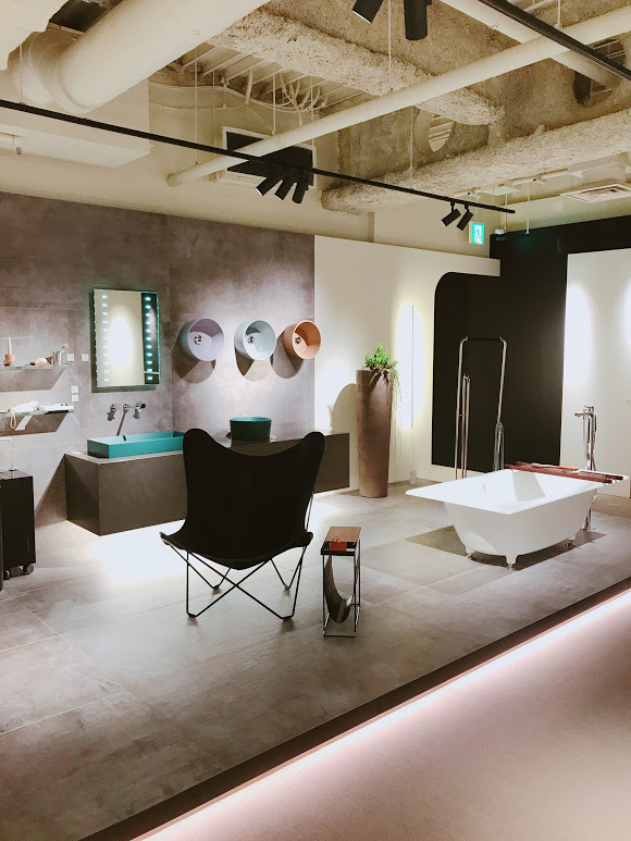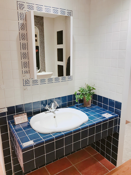タイル以外にも洗面台などのディスプレイがたくさんあって、いつみても参考になるなー、と実感してきました。