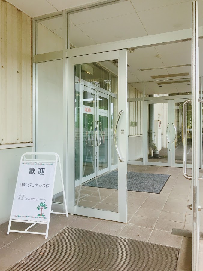この工場は配送センターを改装したそうです。確かにそんな感じの作りですね。歓迎看板まで出してもらって恐縮です。