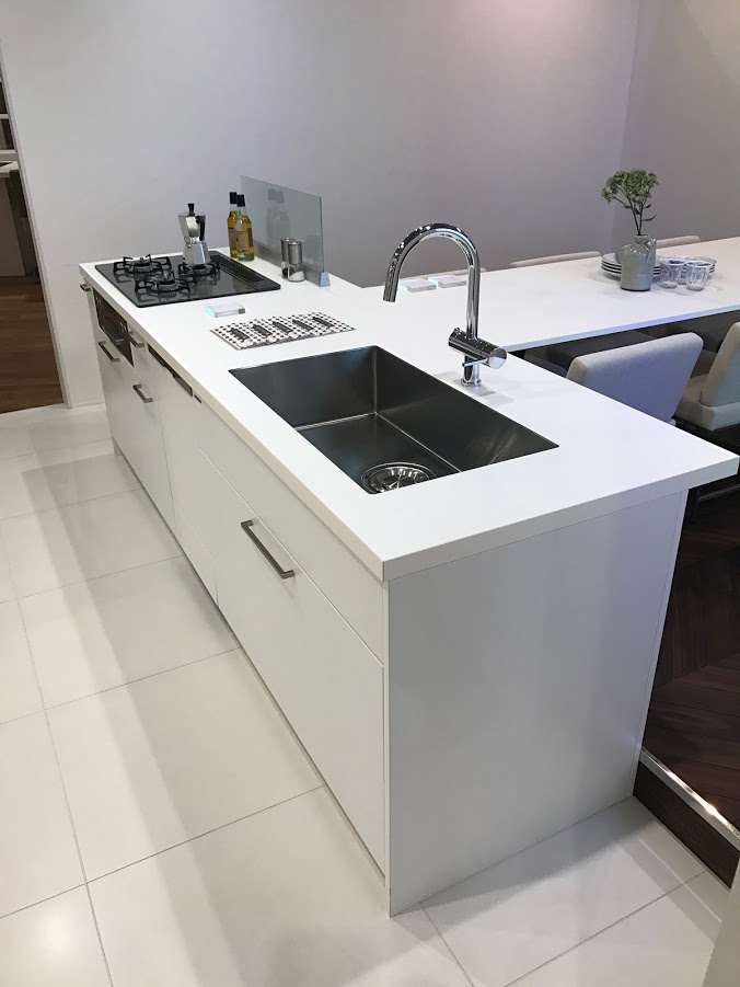 扉やワークトップはEVALTという高機能素材で、人工大理石やステンレスとは違った個性的な雰囲気が特徴的でした。