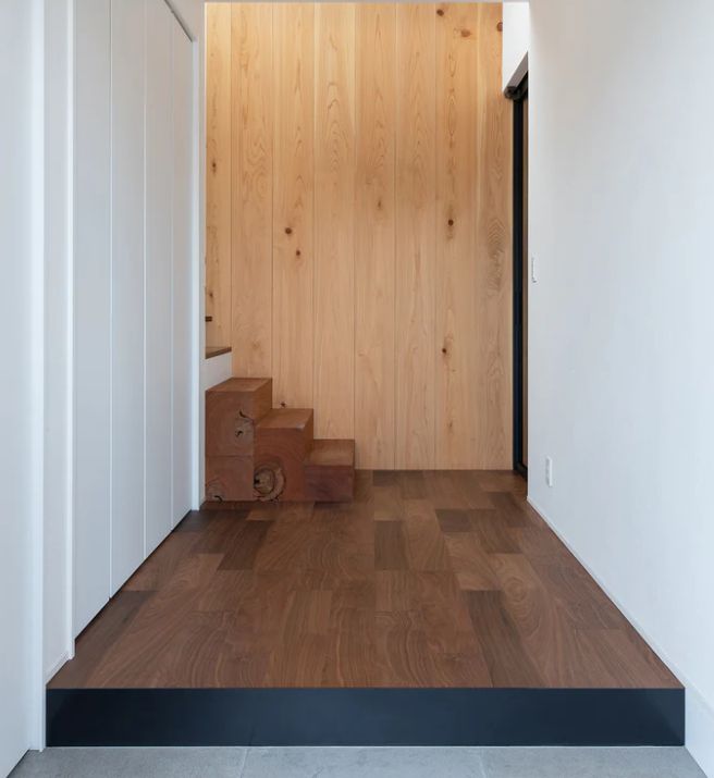 玄関框とは、玄関土間と室内フローリングとの境目に取り付けられる部材で、段差の納まりを美しく整える役割を持ちます。