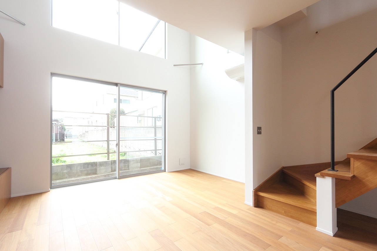 こちらは吹抜けとの併用ですが、上部に大きな窓を付けてあげることで外の明るさを効果的に取り込むことができるので、開放感が大きくアップします。