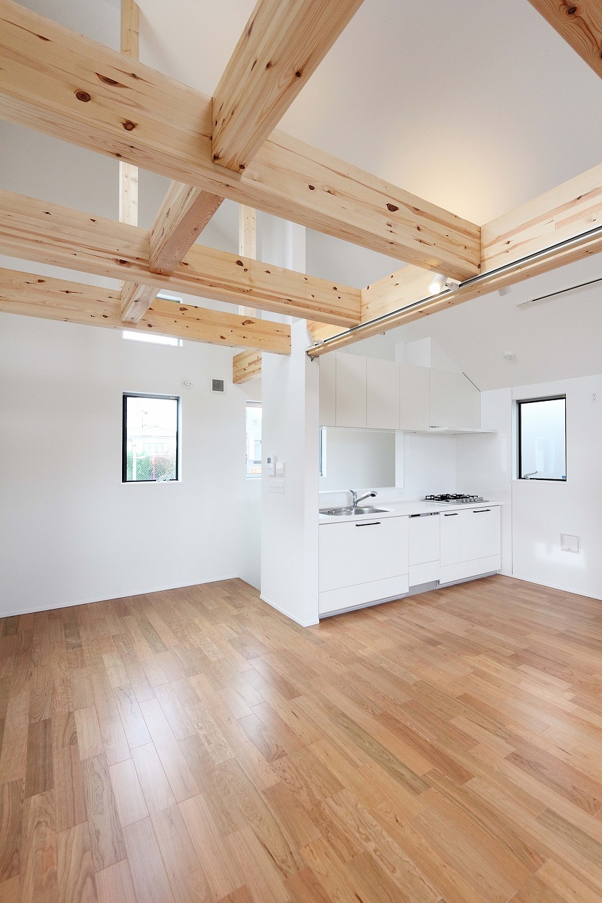 高さ制限が厳しいエリアでは、「寝る」「勉強する」用途の部屋があるフロア天井をあえて下げることで、家族がくつろぐ大事なスペースであるリビングフロアの天井を上げることができます。