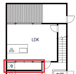 こちらはキッチンの背面収納内に冷蔵庫を配置した間取り。