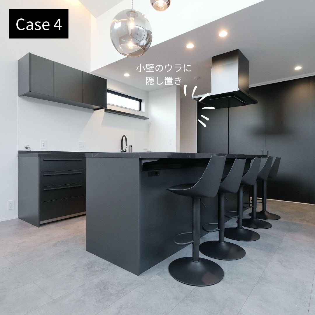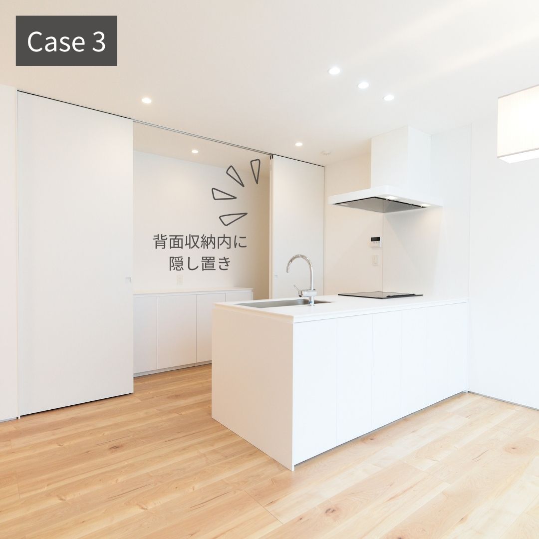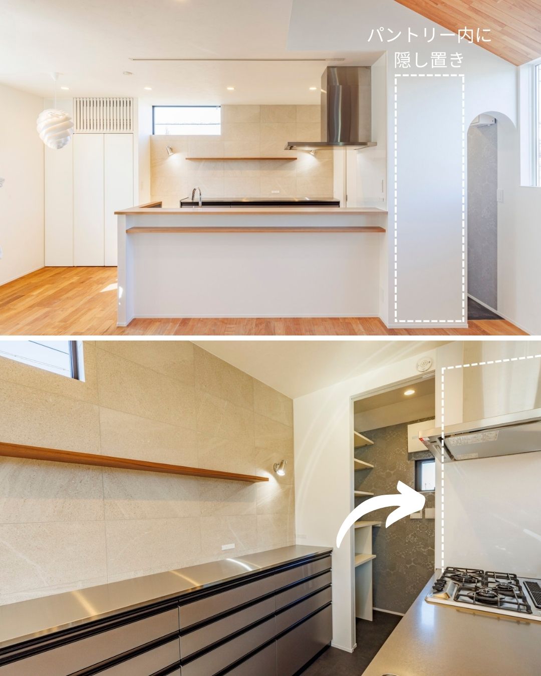構造的にも取り入れやすく、オープンなキッチンでもすっきり見せられる方法です。