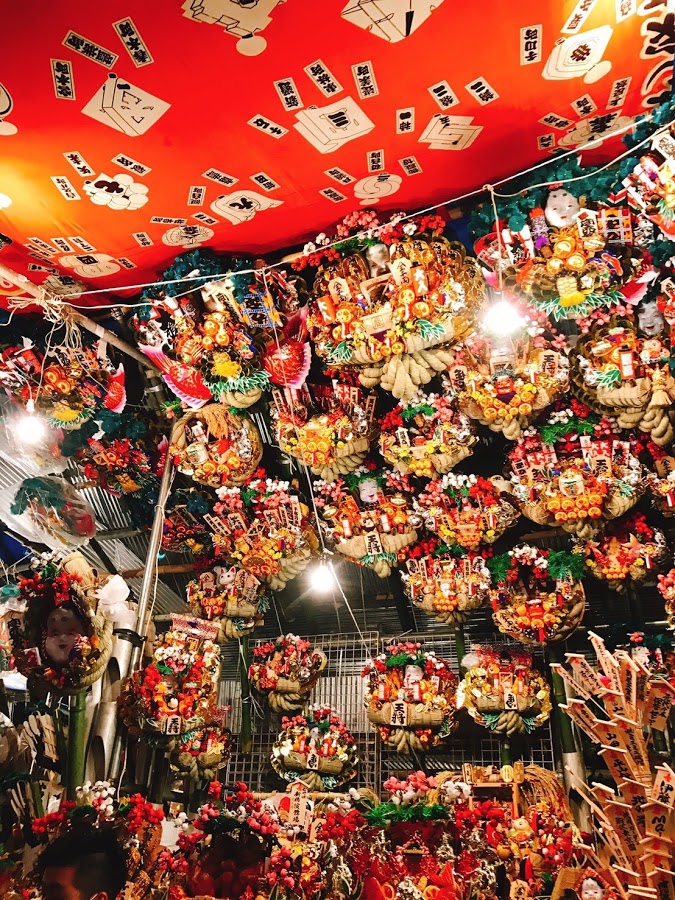 先日新宿に行ったら何やらたくさん人がいたので行ってみたところ、花園神社で大鳥祭りをやってました。大小さまざま色とりどりの熊手がたくさん並んでいて、出店でも寒い中酒盛りしている人たちで大賑わいでした。