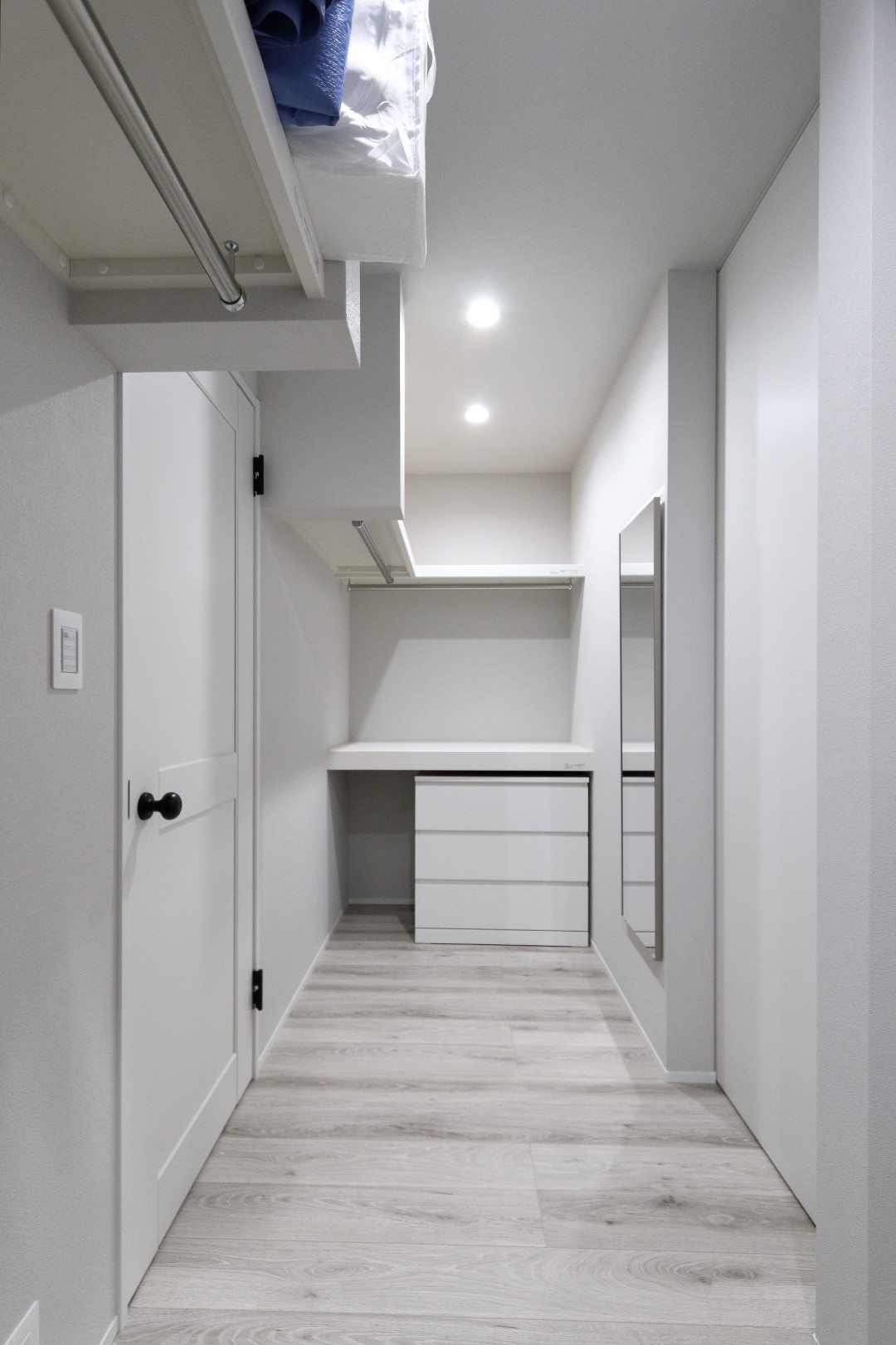 帰宅後はそのままウォークインクローゼットを通ってお部屋へ入る動線にすることで、コートや上着をさっと掛けられる仕様に。