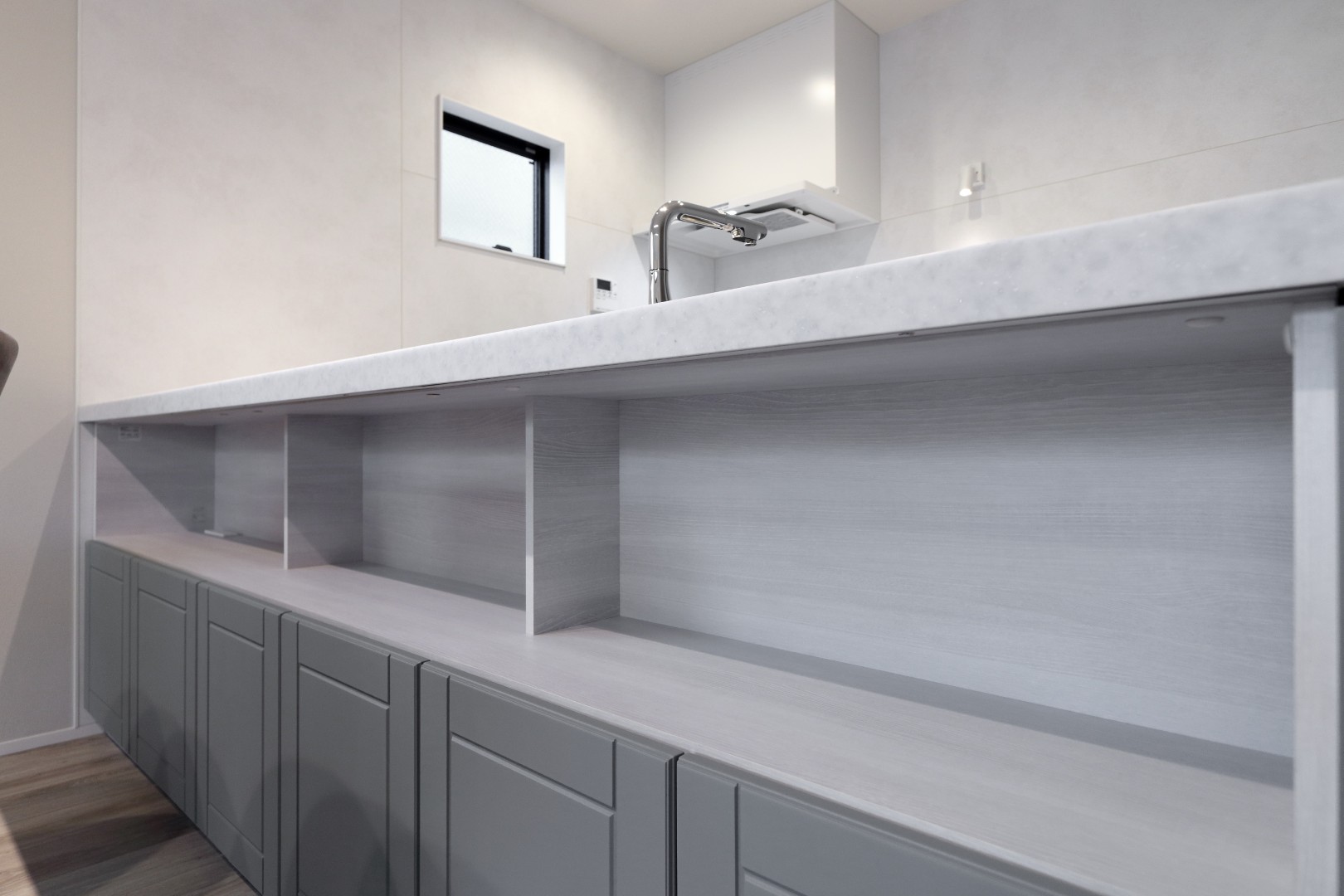 また、ダイニング側には収納を設けることで、日常使いのしやすさにも配慮。