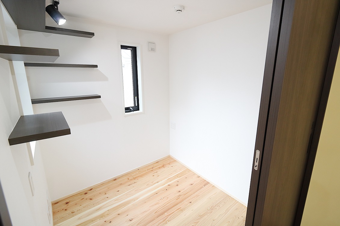 こちらは家具設置前の写真ですが、ご主人の趣味部屋&書斎スペース。いまはPCや趣味のグッズなどがしっかり配置されています。ちなみにこのスペースの上は子供が楽しいロフトになってます。