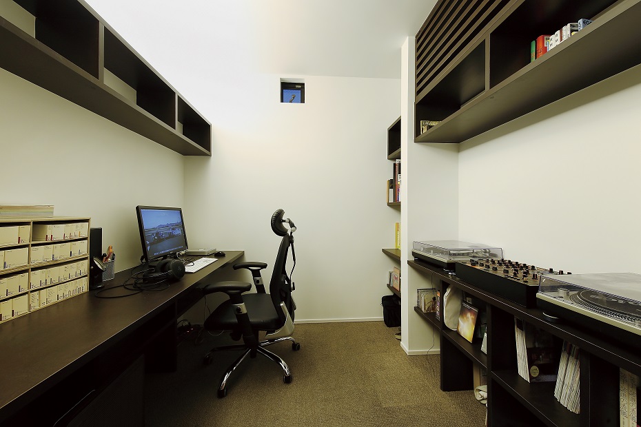 こちらはお籠りバージョン。DJブースやドラムも置いているため窓は極力少なく防音性能を高めた趣味部屋兼用の書斎。羨ましい。。。