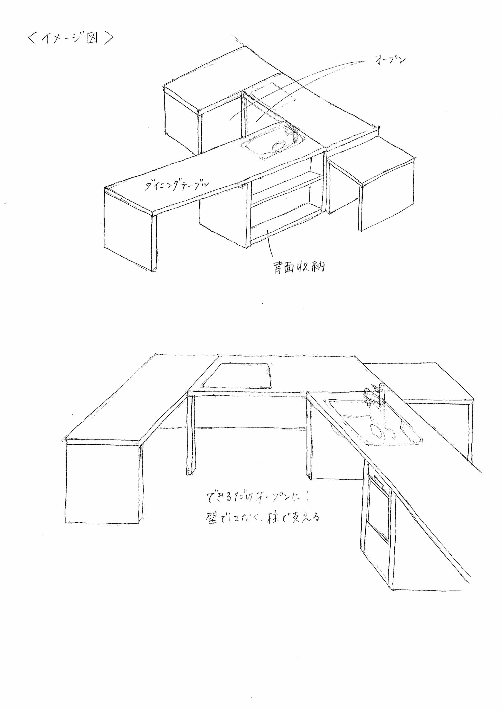 最初はこのイメージ図から始まり、打ち合わせを重ねて寸法等起こしていきました。