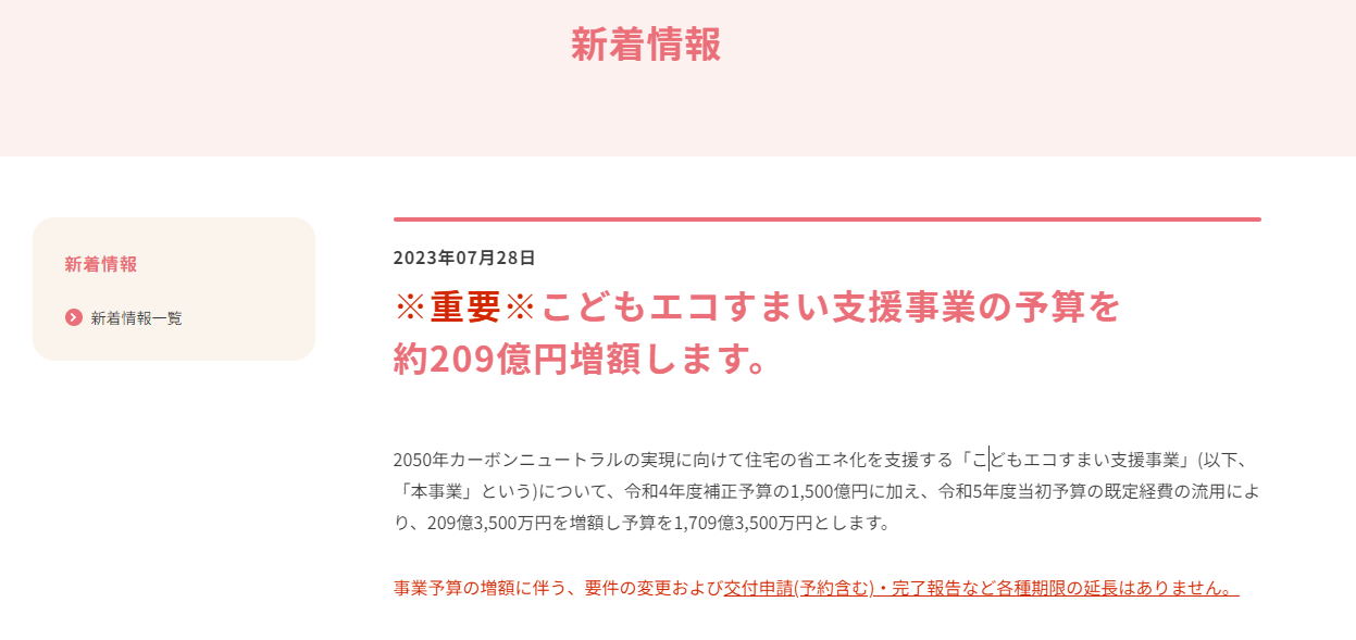 昨日7月28日に、こどもエコすまい支援事業の予算増額が発表されました!