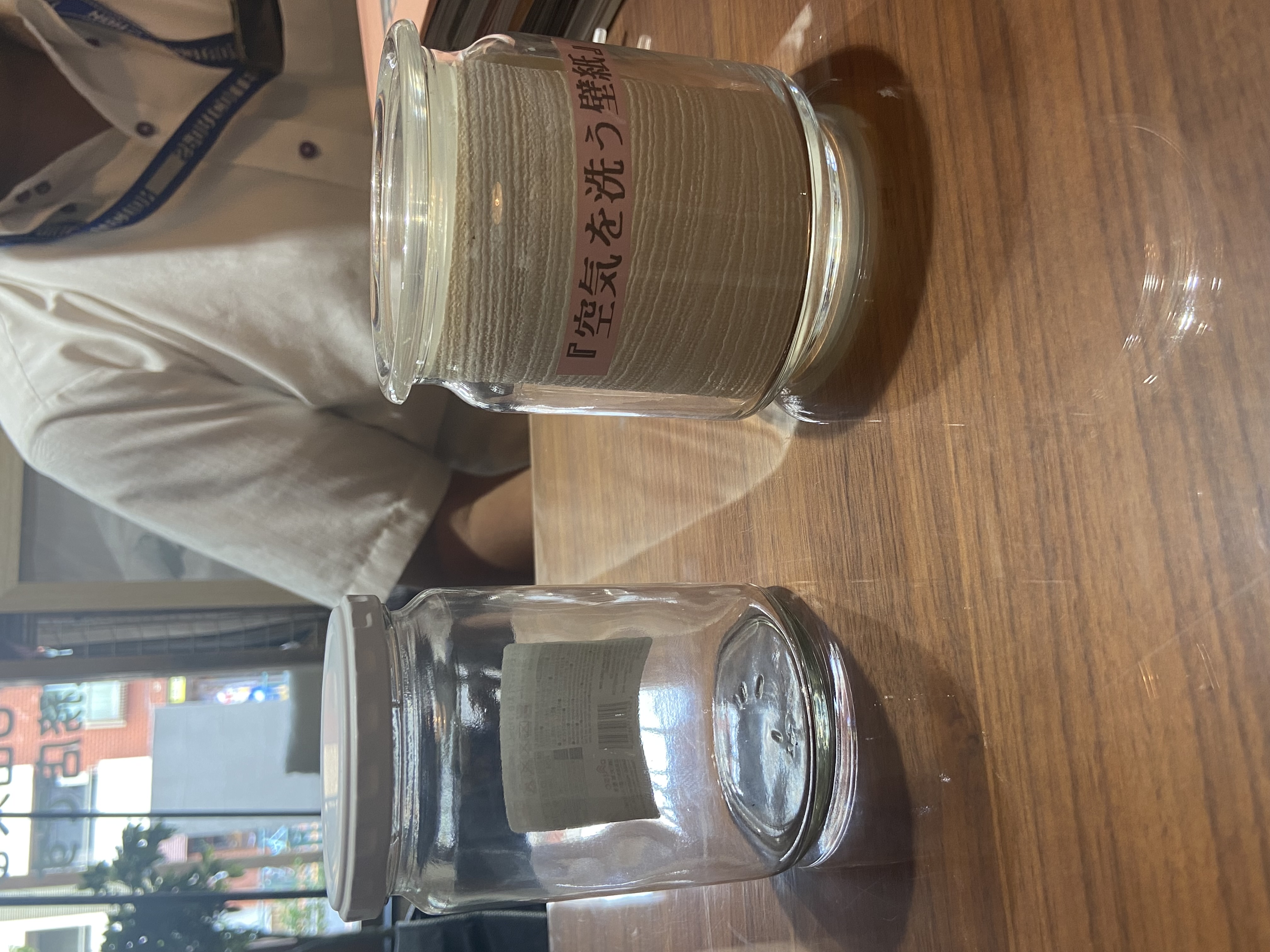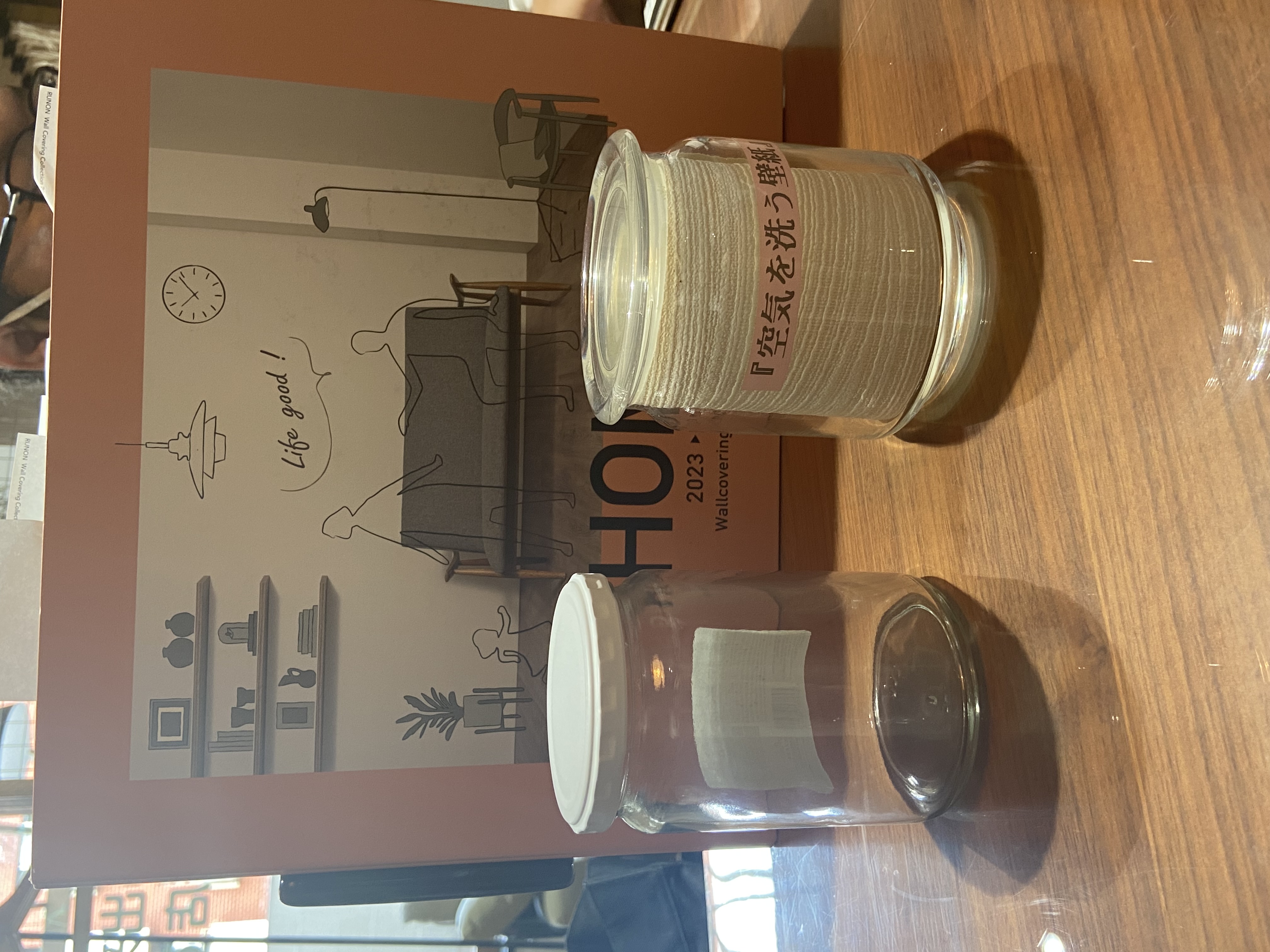 まずは、①何も入れていないビン②空気を洗う壁紙を入れたビンを用意