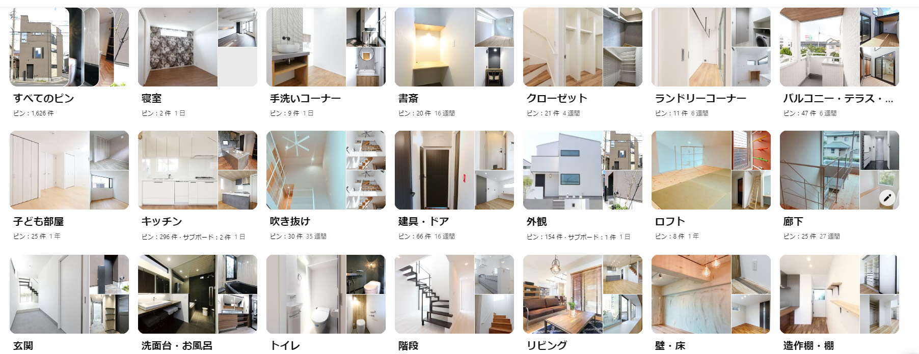 そんなときはピンタレストで、「こんな外観にしたいなぁ」と思ったものをどんどんボードに保存していきます。