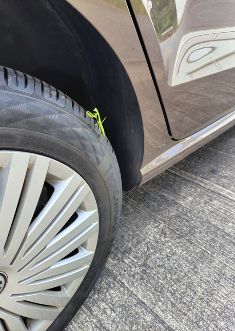 先月久しぶりに釣りに出かけたのですが、朝コンビニをでるとタイヤに何かが。。