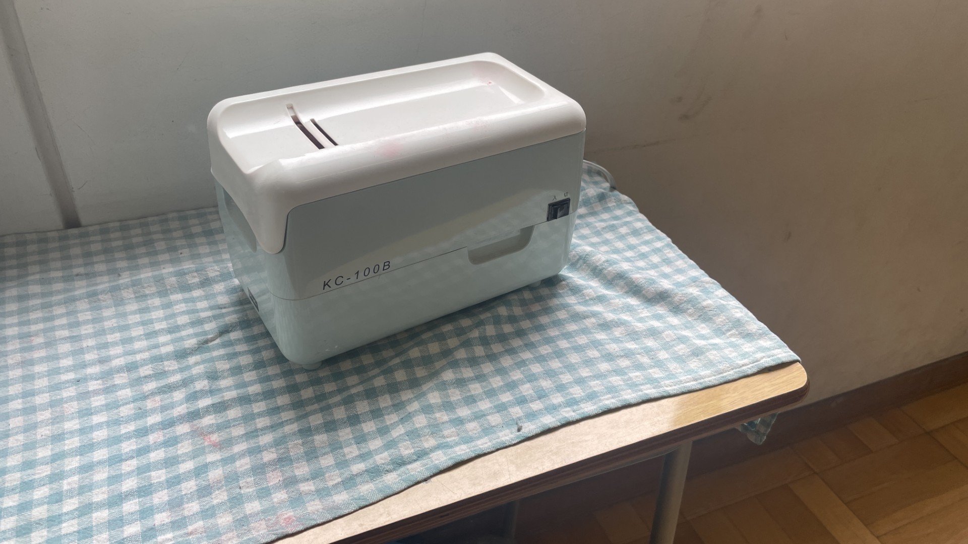 これは黒板消しに溜まったチョーク粉を吸い取る機械です。