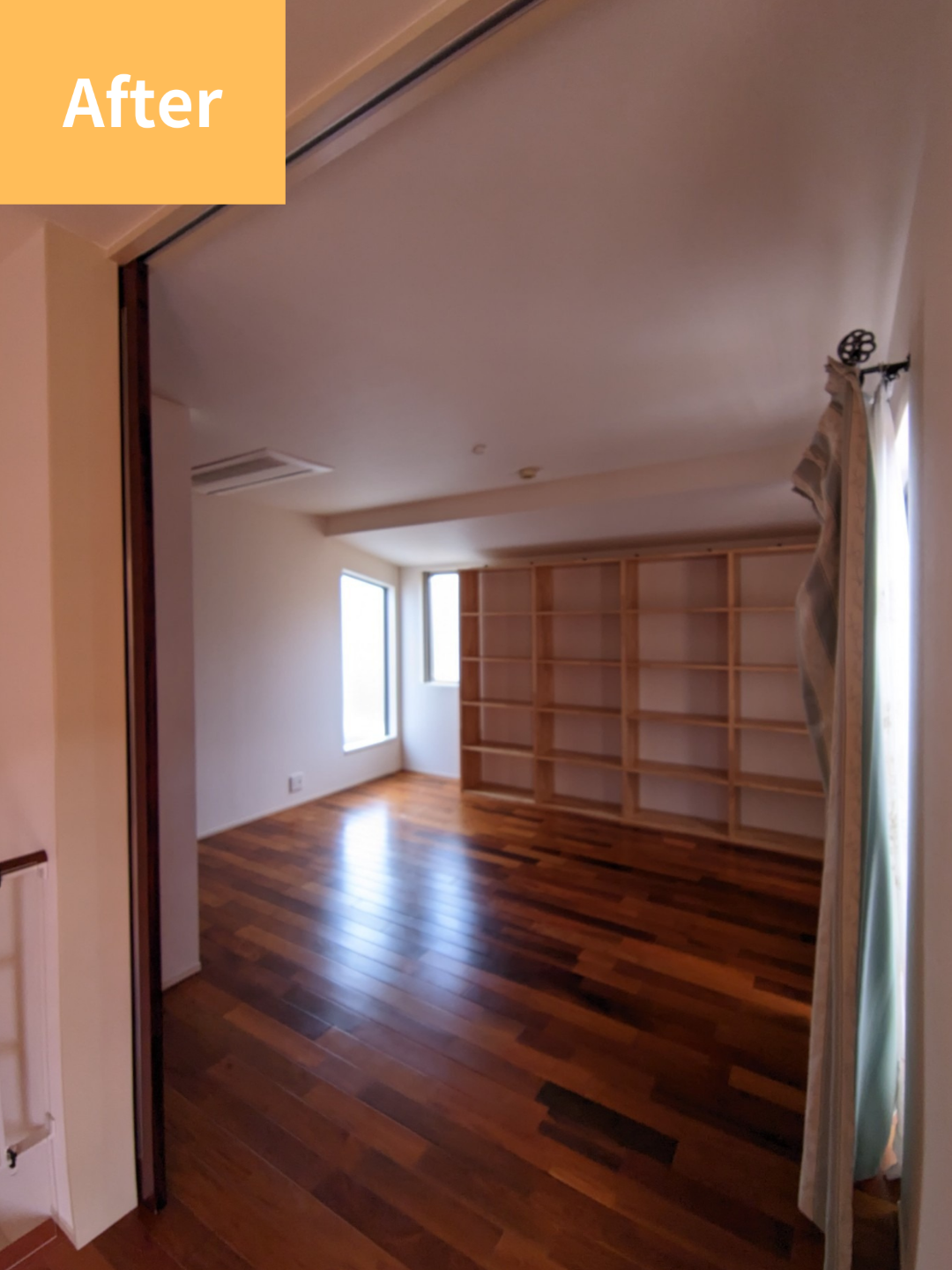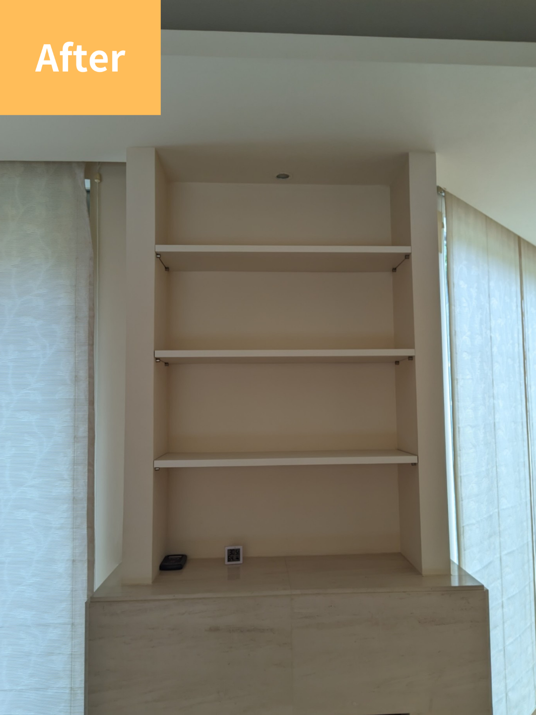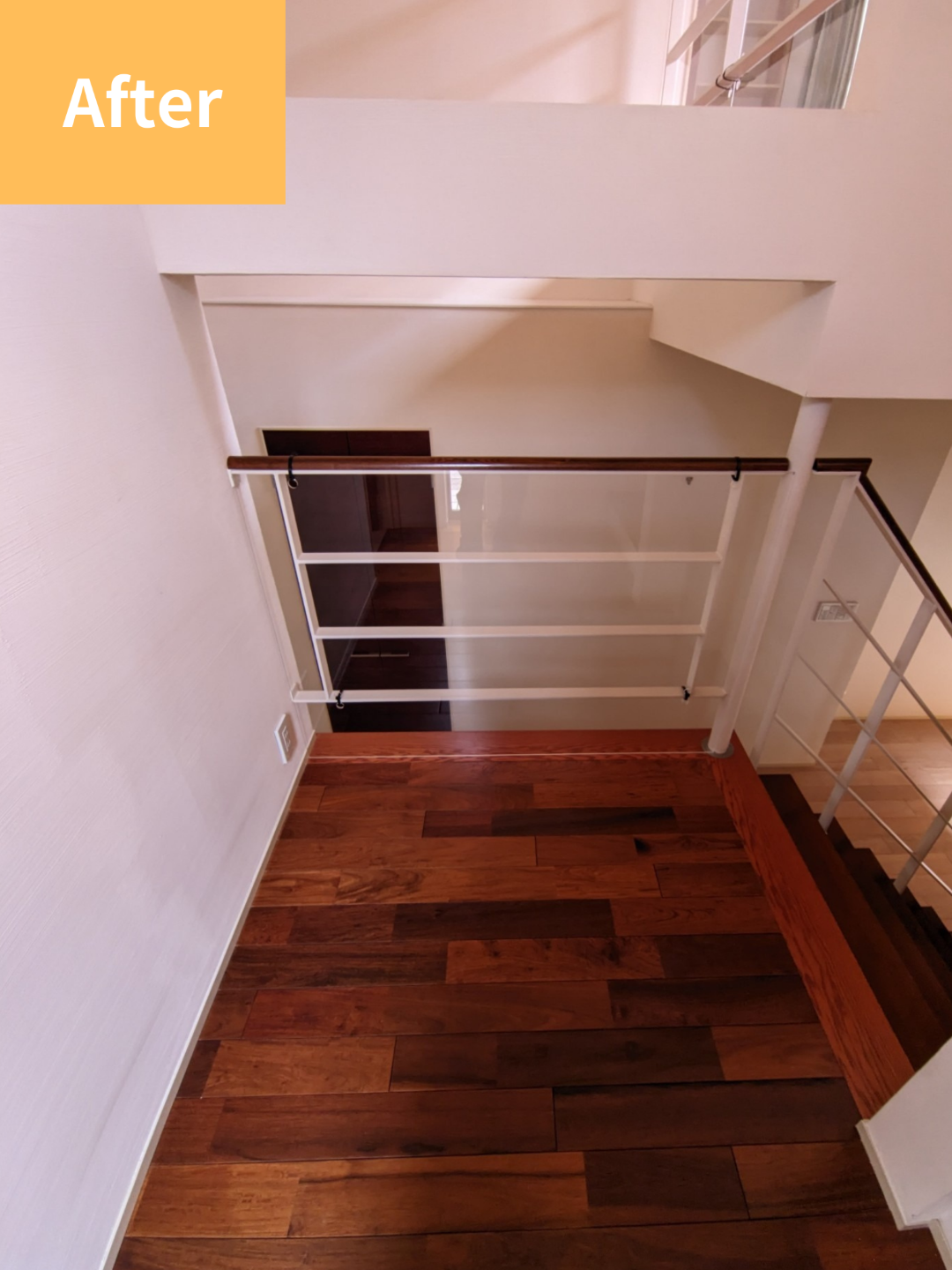 そこで、丈夫な木材を使った棚へ交換。見た目にも温かみがあり、安心して物を置けるようになりました。