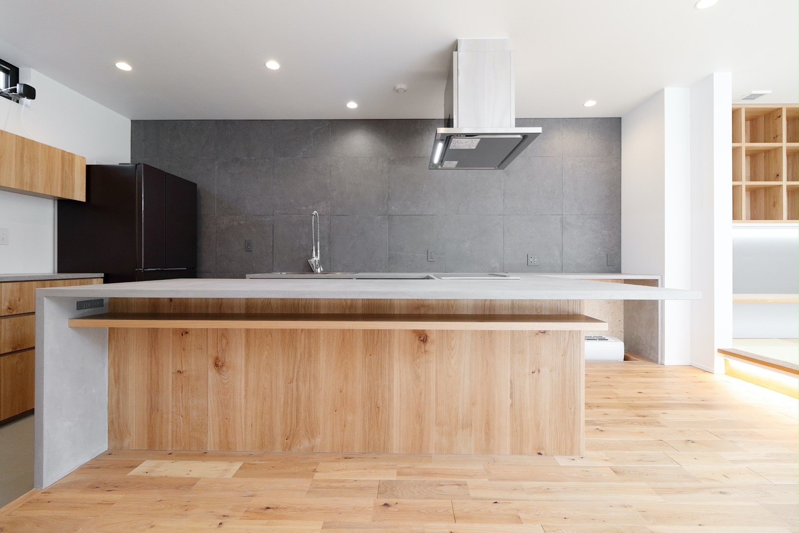 こちらの造作のキッチンは『アンプインテリアデザイン』をいう家具メーカーさんにお願いしました。
