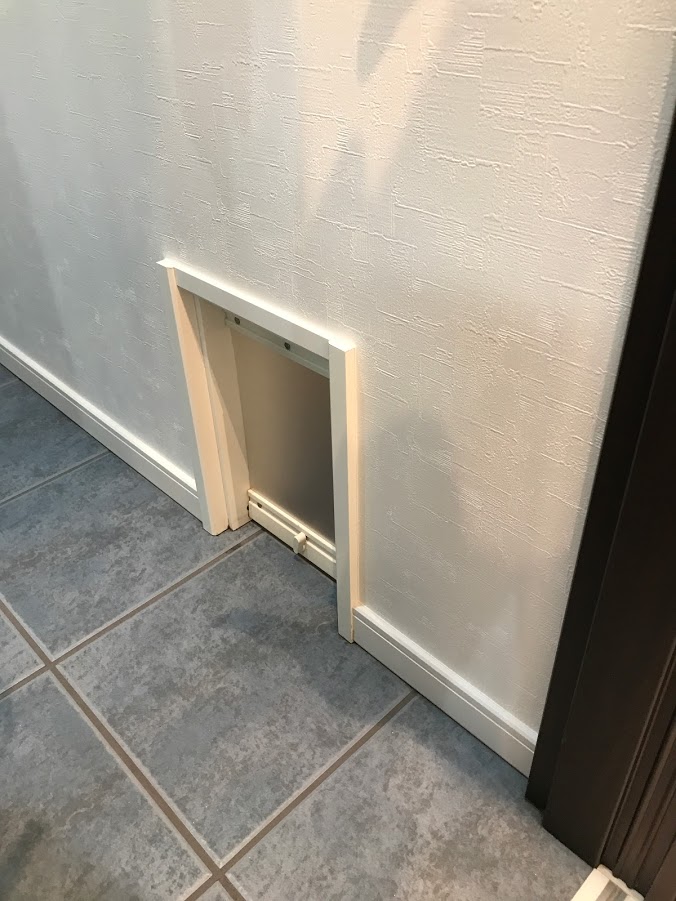 さて、最近はペットを飼われている方も多いので、家づくりをするときはペットも家族の一員として考えてあげたいところですが、実はいろいろと工夫する要素があるのです。先日見せていただいたモデルハウスの実例です。