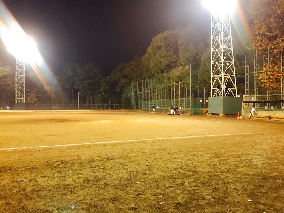 先日のオフは昼間に世田谷で2時間練習試合してさらに2時間練習。その後夜に別のチームで杉並にてナイター練習。高校球児か?
