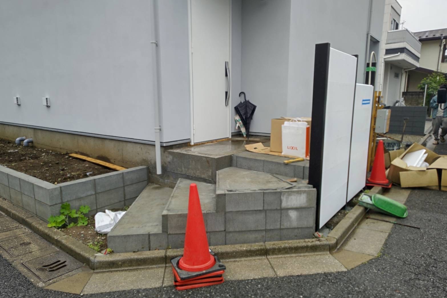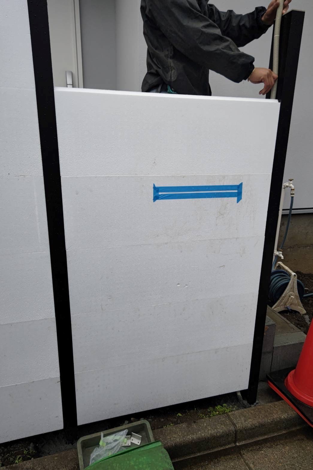 M様邸の外構工事中なのですが、こちらの門柱なんと発泡スチロールでできております!