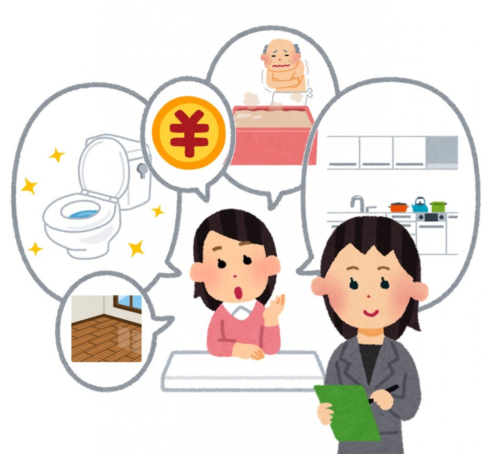 相談会・ヒアリングお客様のご要望・ご予算・工事の時期などについて、ヒアリングさせていただきます。 ざっくりとしたご要望でも構いません。カタログや事例写真をご覧いただきながら、ご要望をまとめていきます。 その際、お家の図面や設備の資料があればご用意ください。マンションの場合は管理規約も確認させて頂きます。 ⇩ |