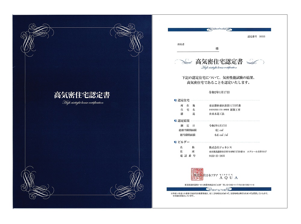 また、専門の気密測定試験機を使い家中の相当隙間面積を測ることで、より気密精度の高い家づくりをしています。