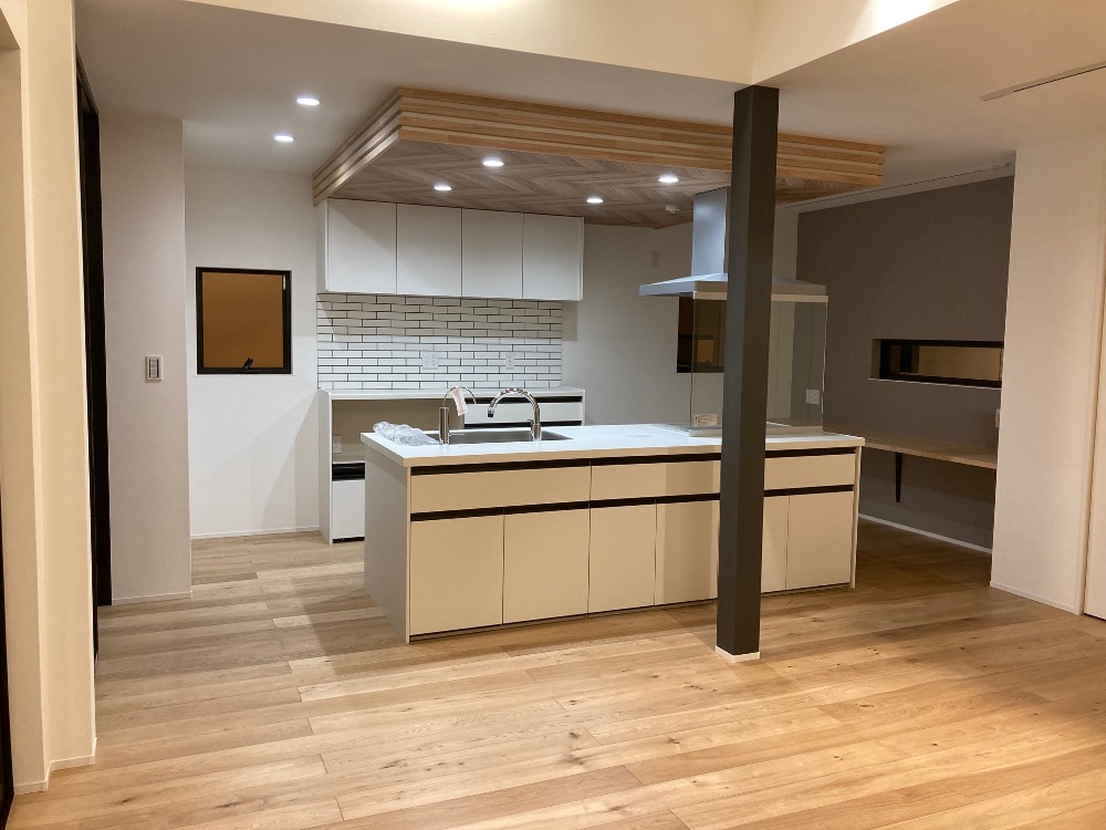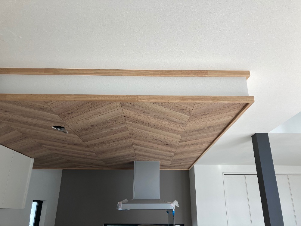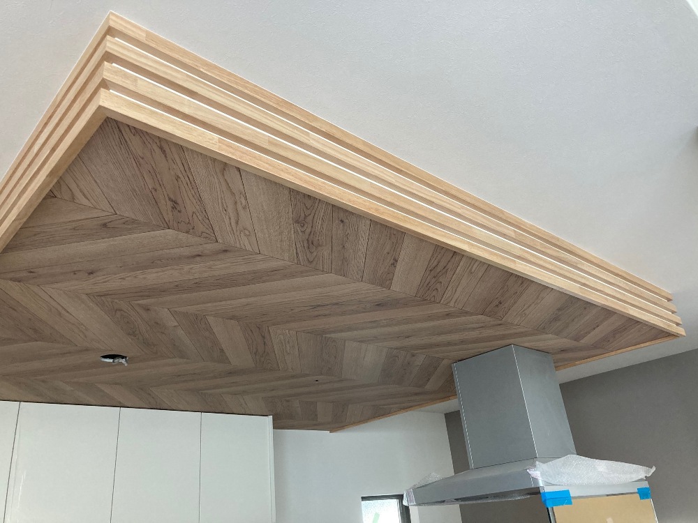大工さんによってキッチン天井、幕板部分に見切り材がつけられました。
