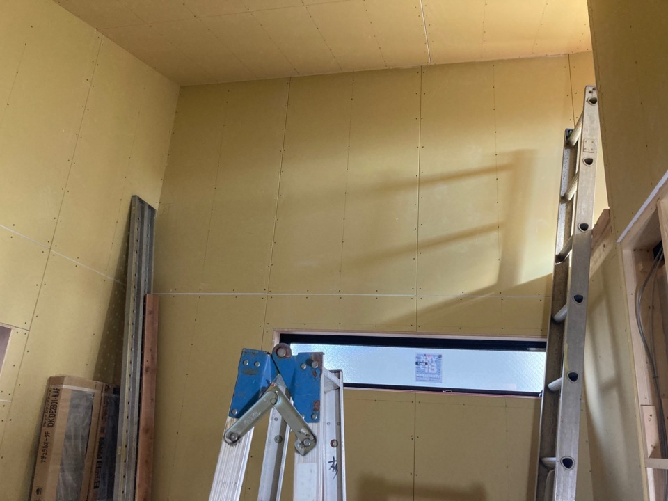 石膏ボード繋ぎ目部分にパテを埋めて、ペーパーをかけ段差ができないように平らにしていきます。