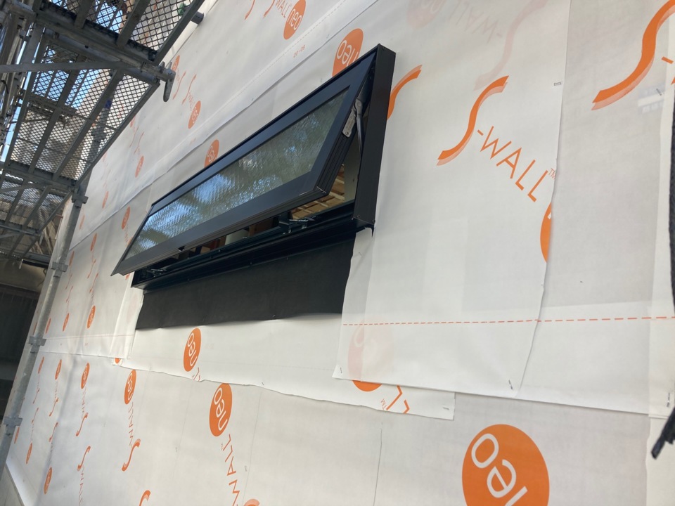 外装下地検査とは、防水シートの重ね代・外壁貫通部の防水処理・サッシまわりの防水テープの施工状況のチェックを受けます。