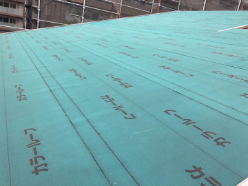 野地板の上にルーフィングが施工されました。