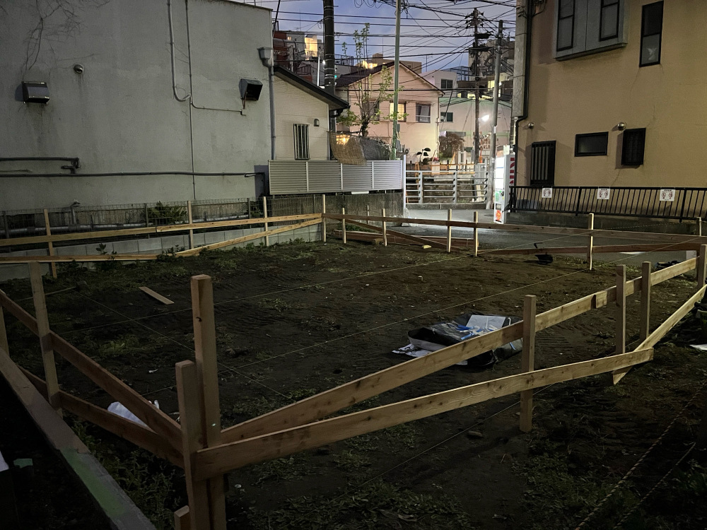 この遣り方とは、基礎工事に重要な情報が示されている囲いの様なものです。