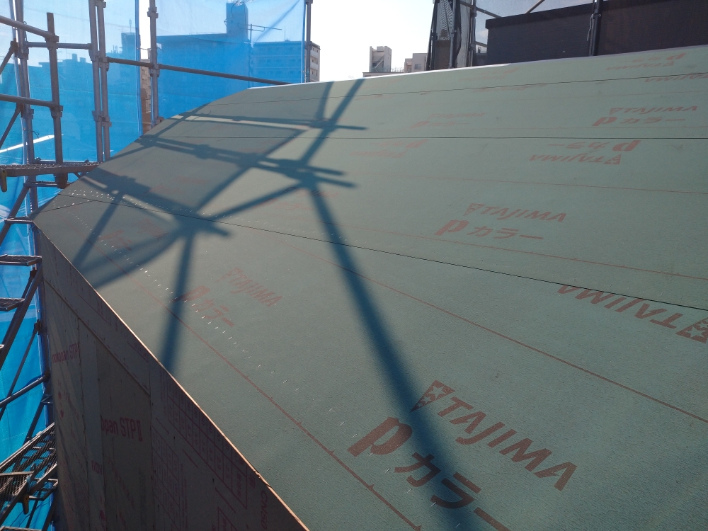 ルーフィングとは屋根の下地材(構造用ベニヤ)を施工した上に張り広げる防水シートのようなものです。