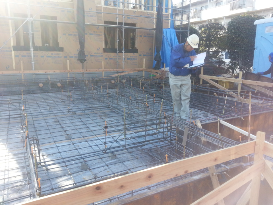 基礎配筋が完了した時点で、瑕疵担保保険の検査を受けます。