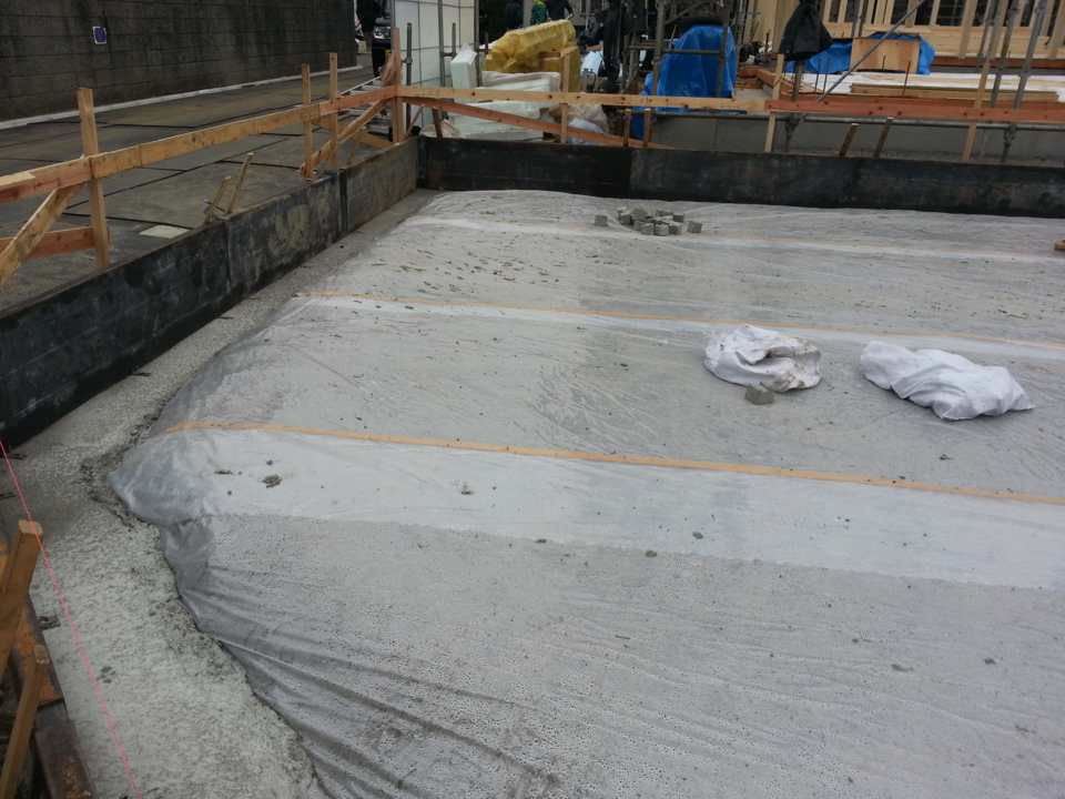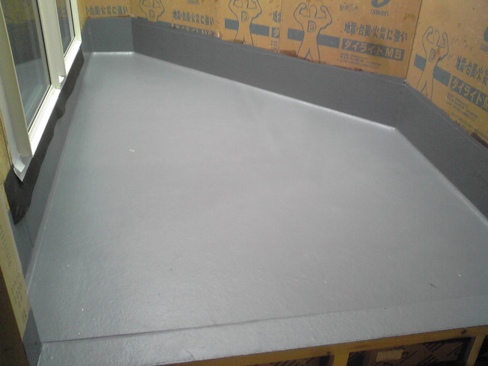 バルコニーの下地が完了し、仕上げの防水工事を行いました。