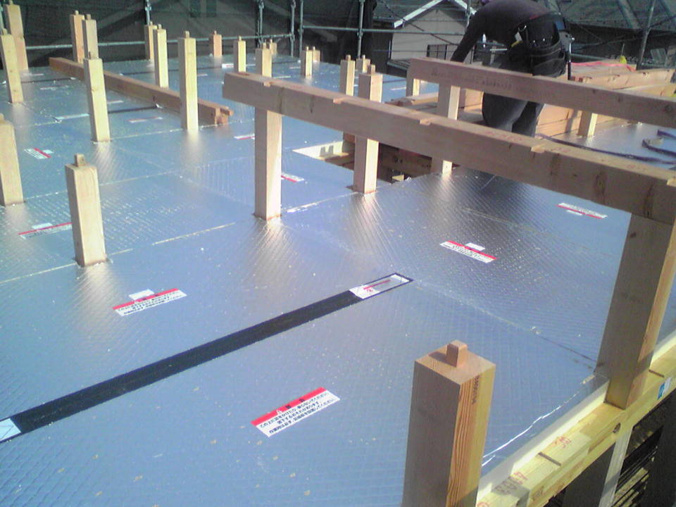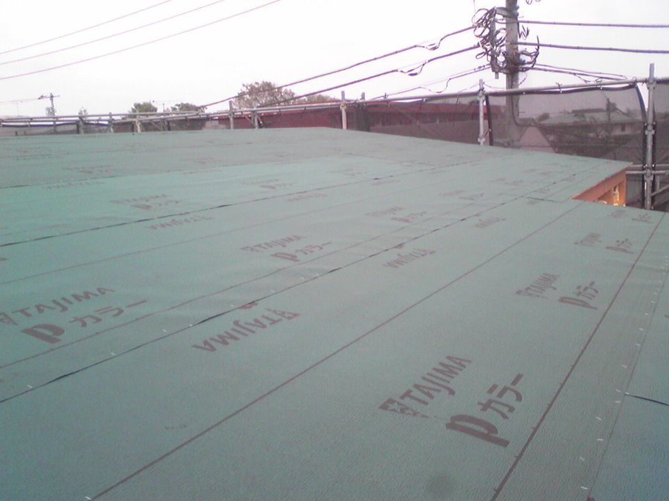 ルーフィングとは屋根の下地材(構造用ベニヤ)を施工した上に張り広げる防水シートのようなものです。