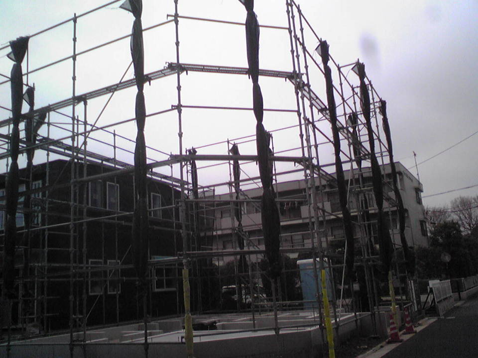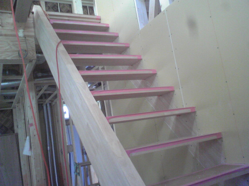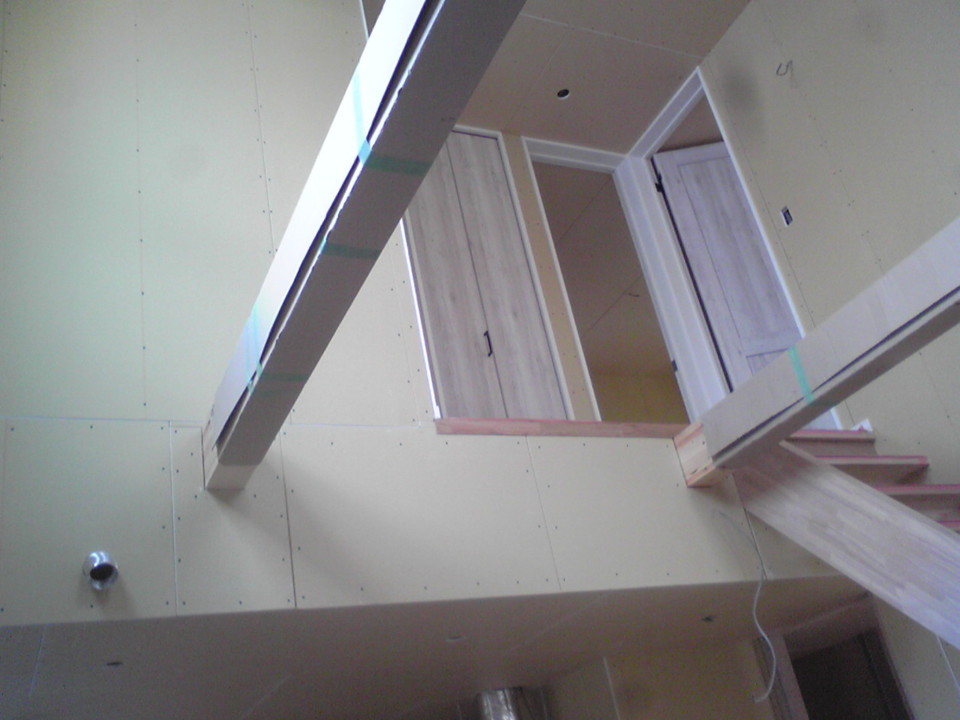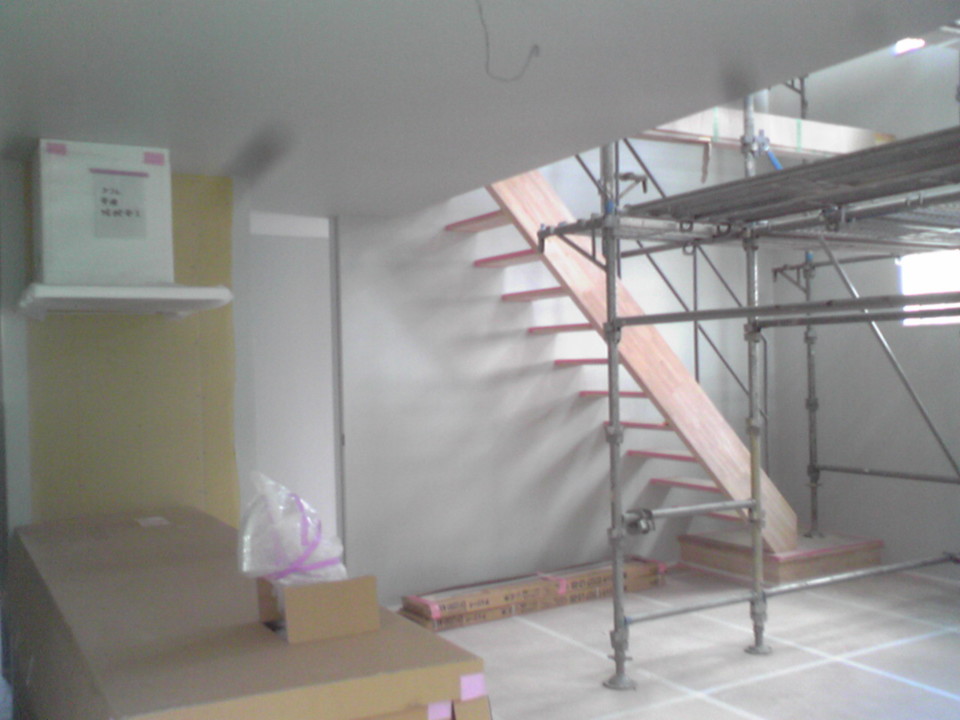 次工程として、階段の鉄骨手摺⇒クロス工事用の内部足場⇒クロス工事へと進みます。