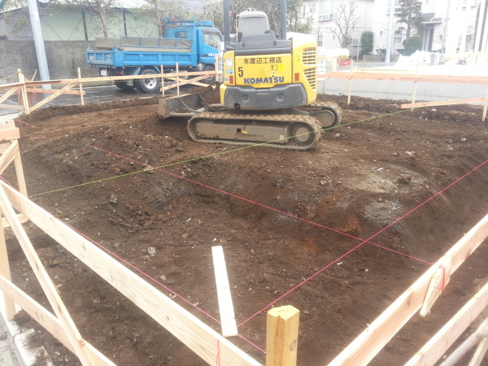 根伐り作業とは基礎図面を基に、配置に添って土を掘り進める作業です。