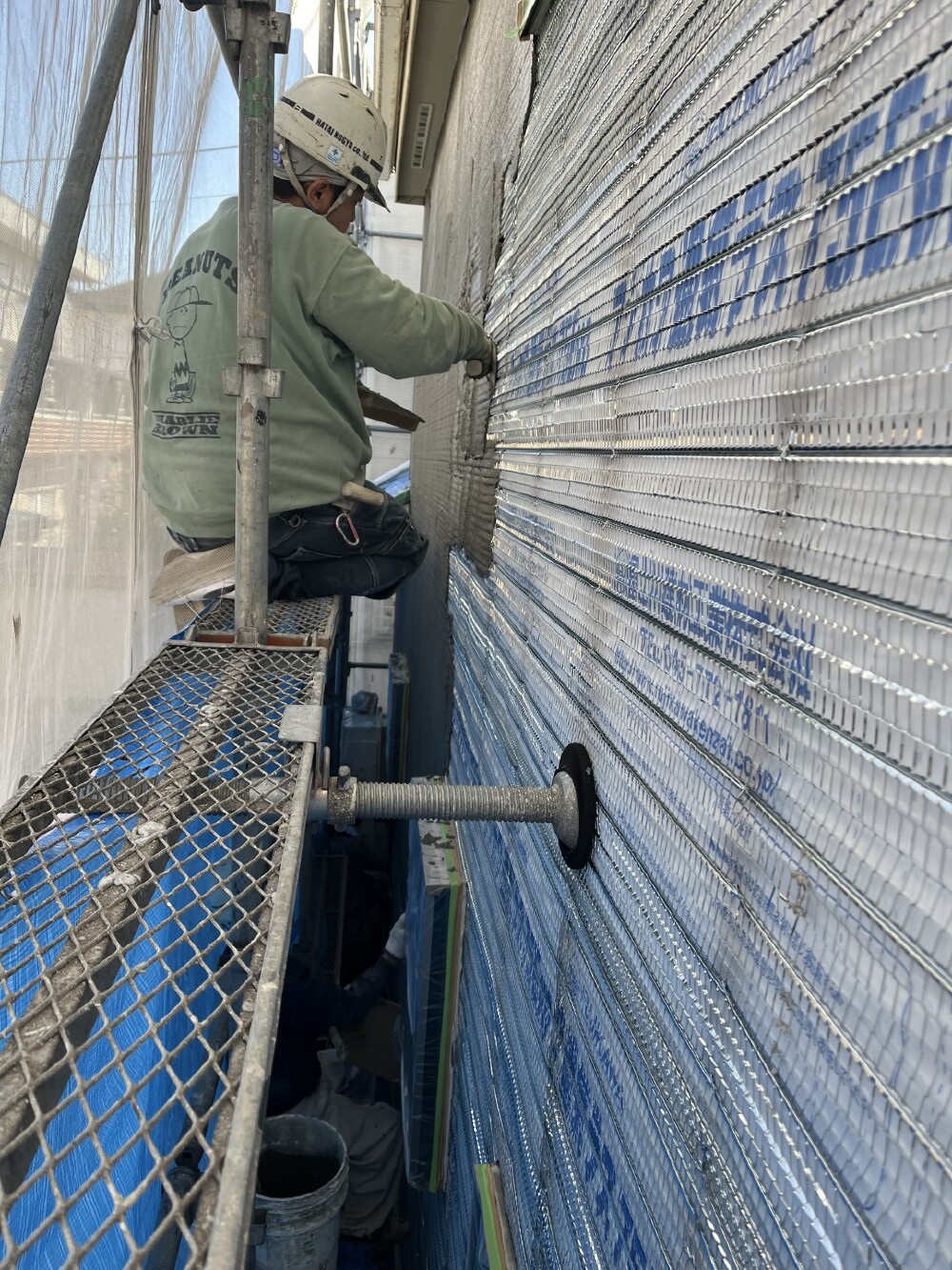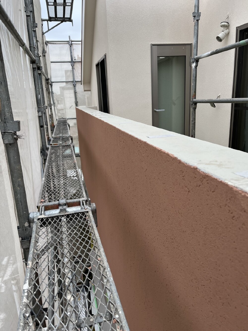 アクセント部分のジョリパットのコテ塗りが完了しました。