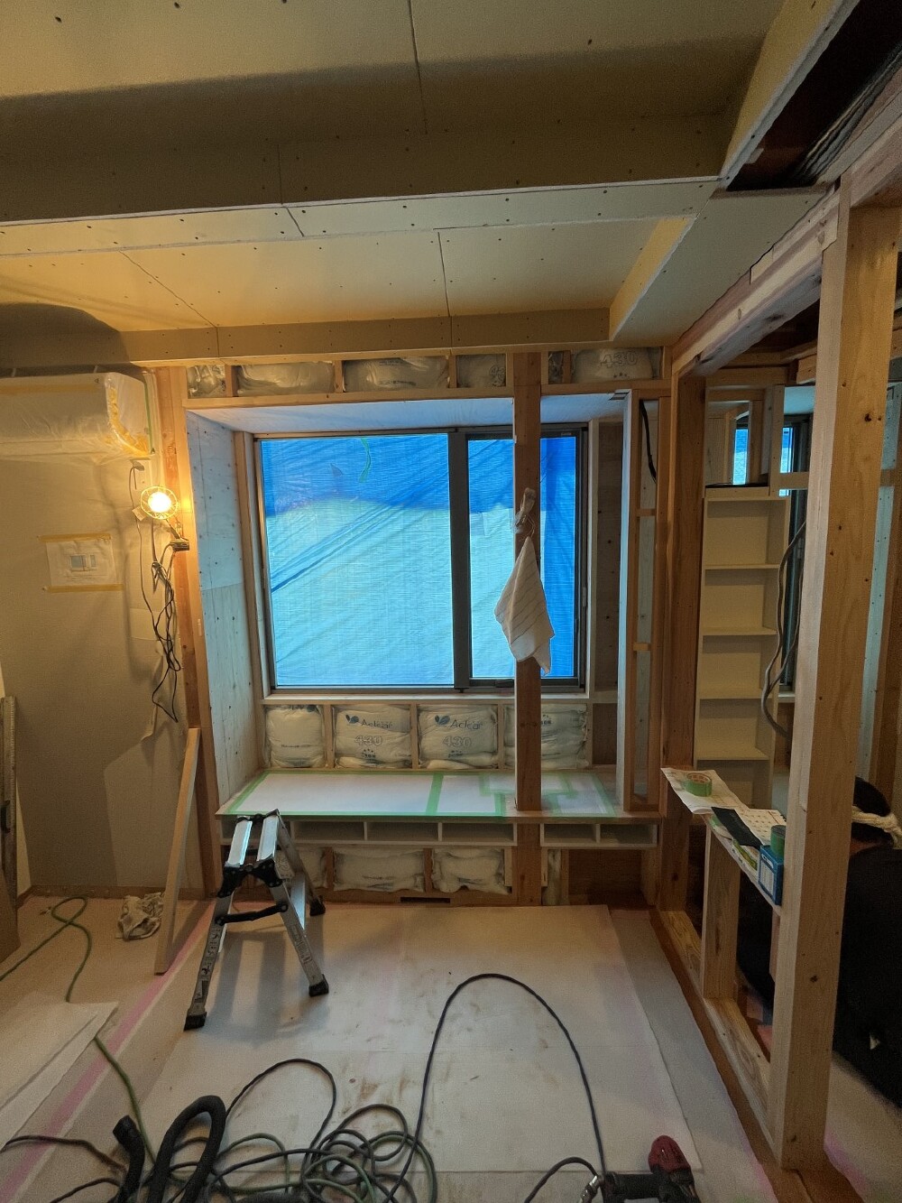 石膏ボードの施工も完了し、細部の修正をしております。