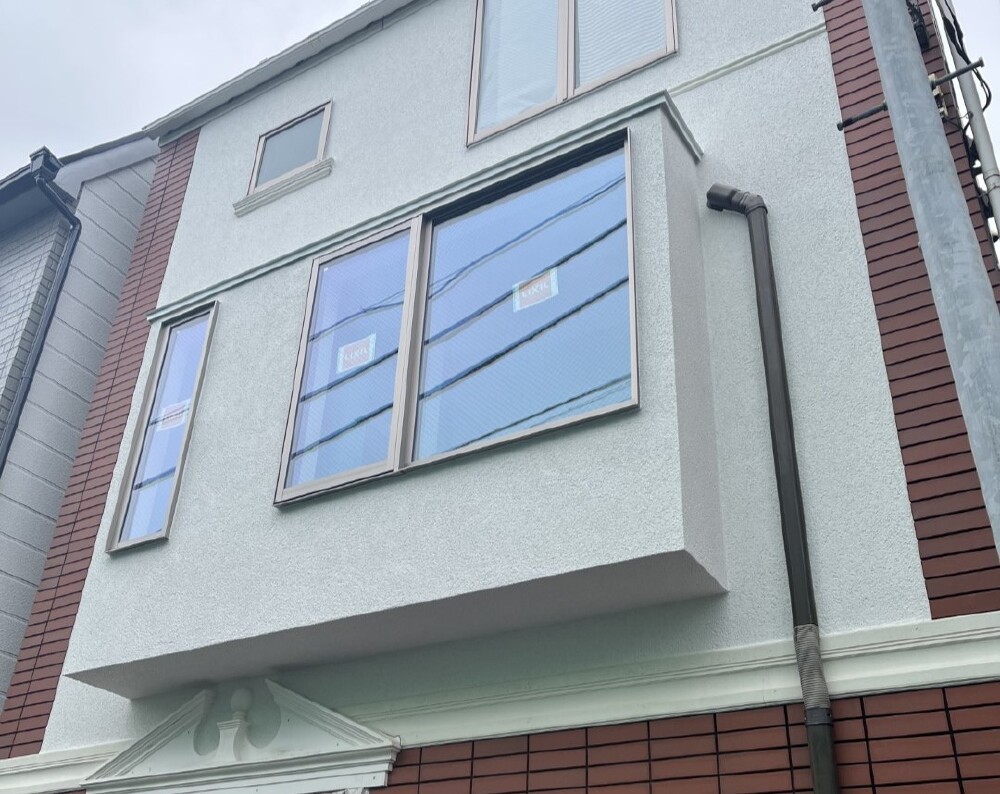 左官養生後の外壁ジョリパット施工が完了しました。