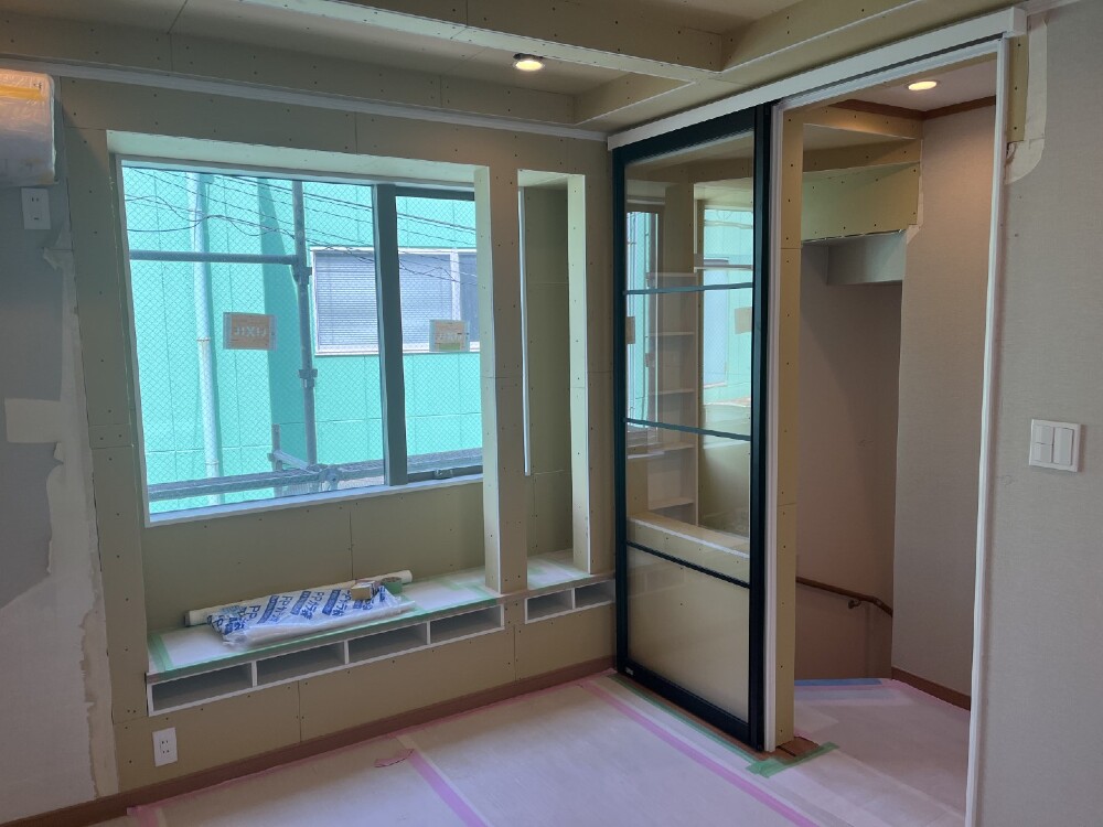 建具(引戸)の取付も完了し、大工の工事が