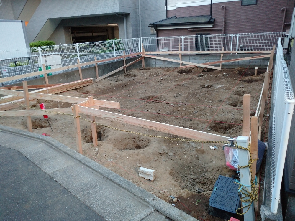 遣り方とは、敷地に対する基礎の配置や、基礎の高さ・直角・幅などの情報を基礎屋さんに分かりやすくするための囲いの様なものです。