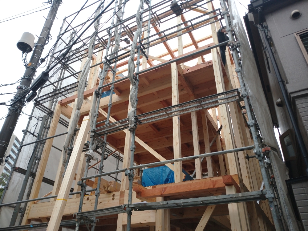 建物を建てる前に足場を組むことによって、転落のリスクを下げたり、足場があるために上棟の作業がしやすくなります。