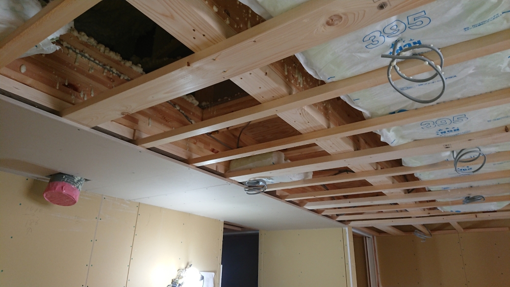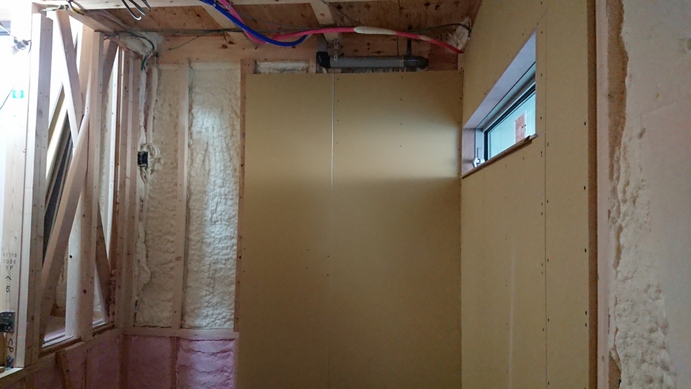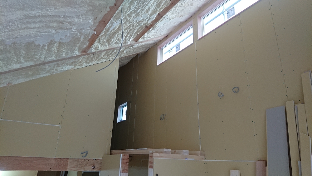 断熱検査が完了したので石膏ボードの施工が始まりました。