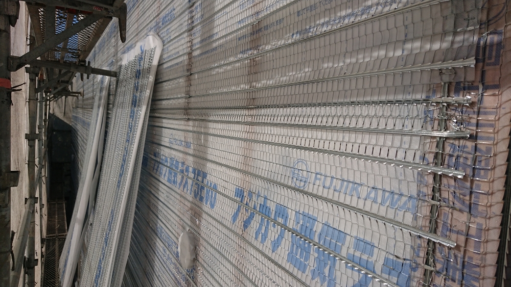 仕上げ材であるモルタルの付きをよくするための作業になります。