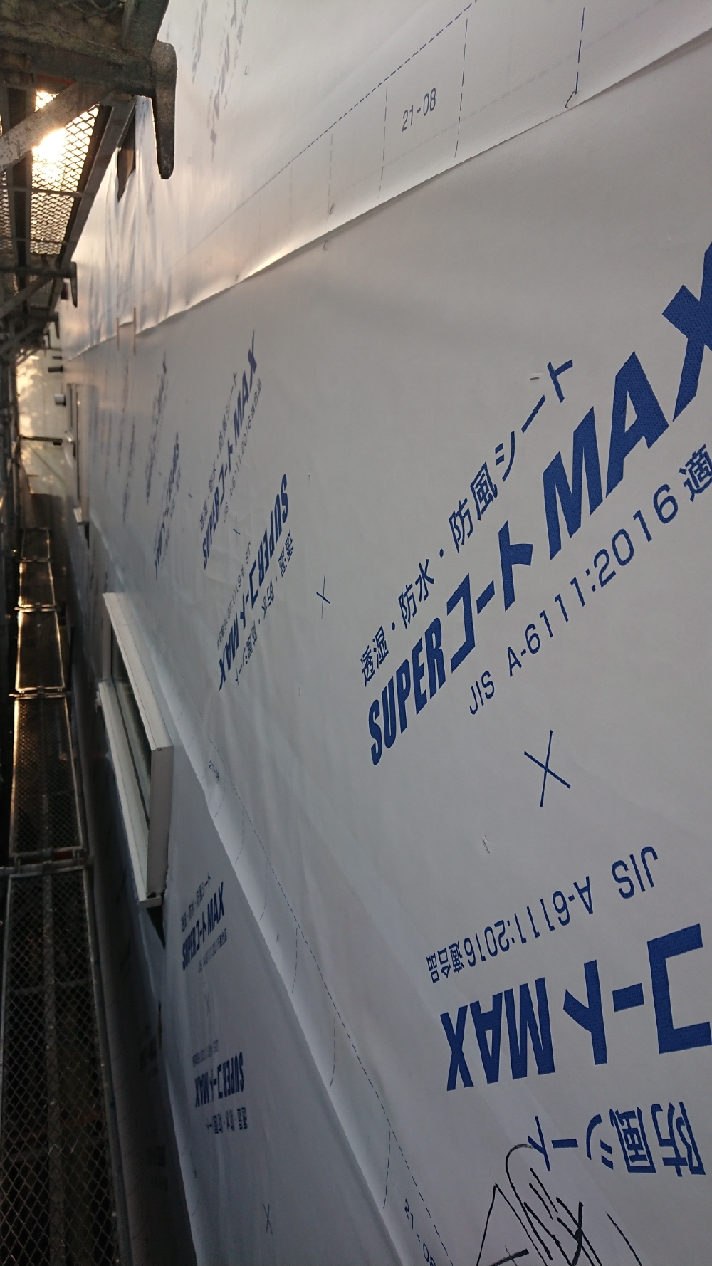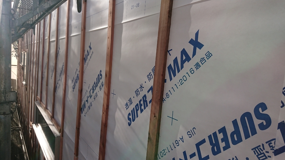 外壁に通気層を確保するために取り付ける板材(胴縁)を取り付けています。
