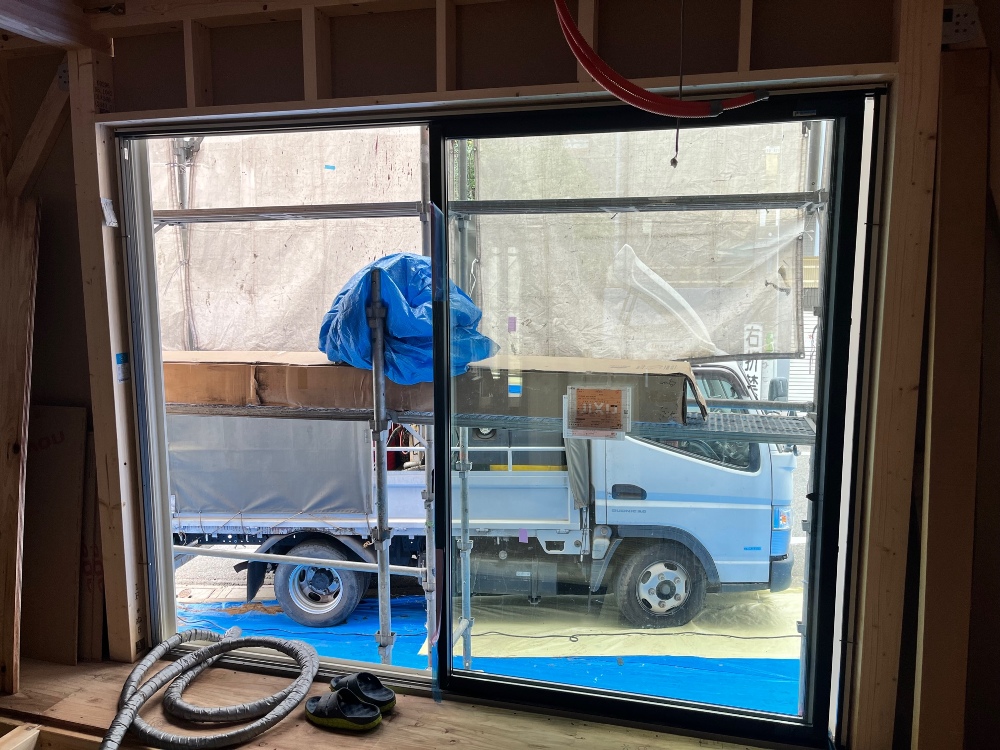 本日、サッシの取付を行いました。