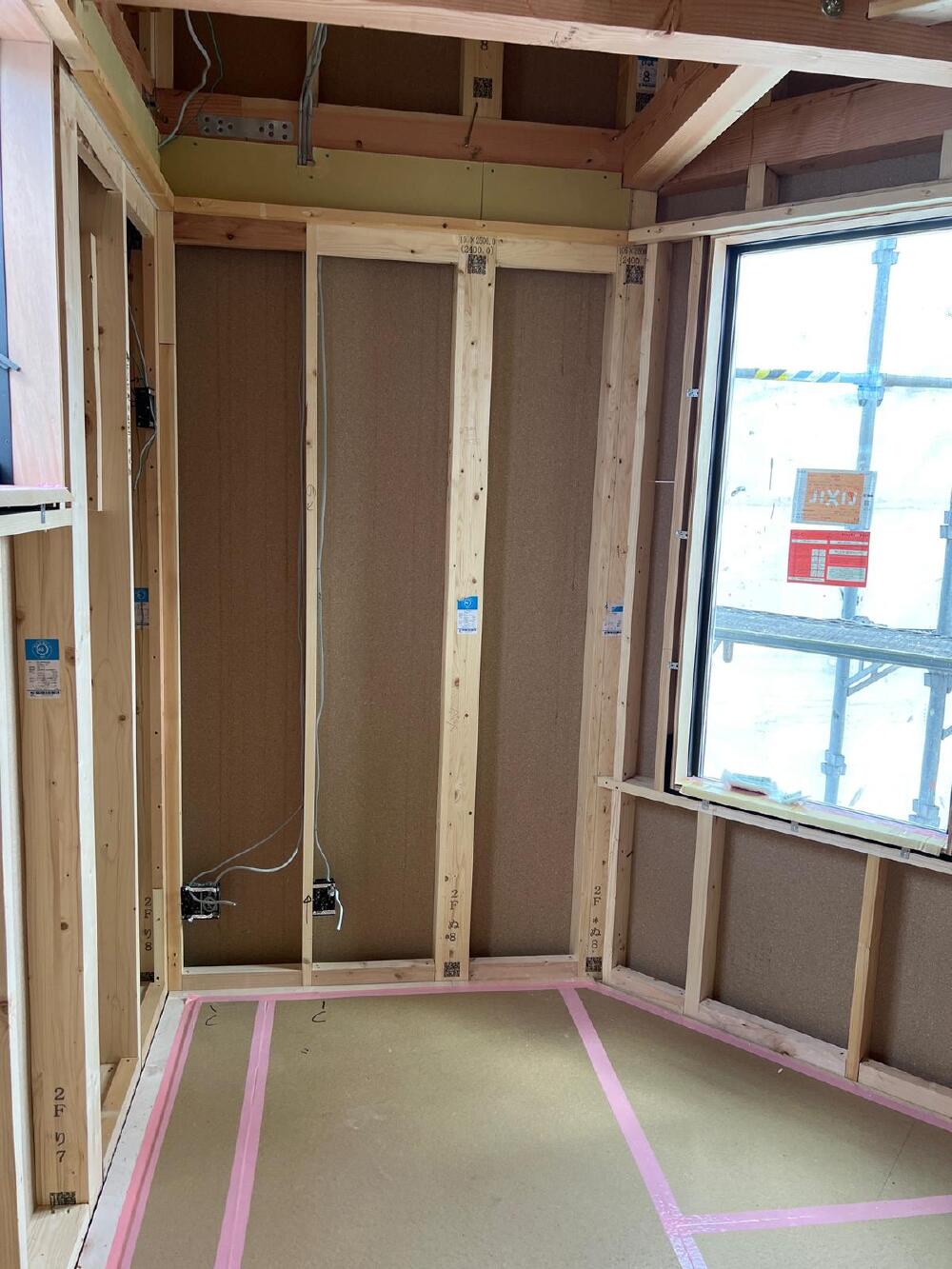 本日から石膏ボード貼りが始まりました。